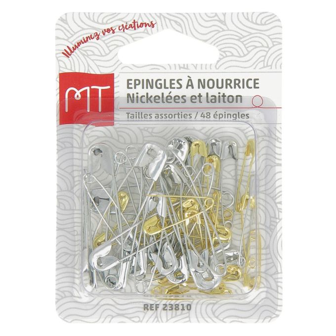 Les épingles de sûreté, aussi appelées épingles à nourrice, sont des épingles métalliques dotées d’un petit mécanisme de fermeture sécurisé. Contrairement aux épingles classiques, elles se referment complètement, ce qui évite de se piquer ou que le tissu ne s’échappe.