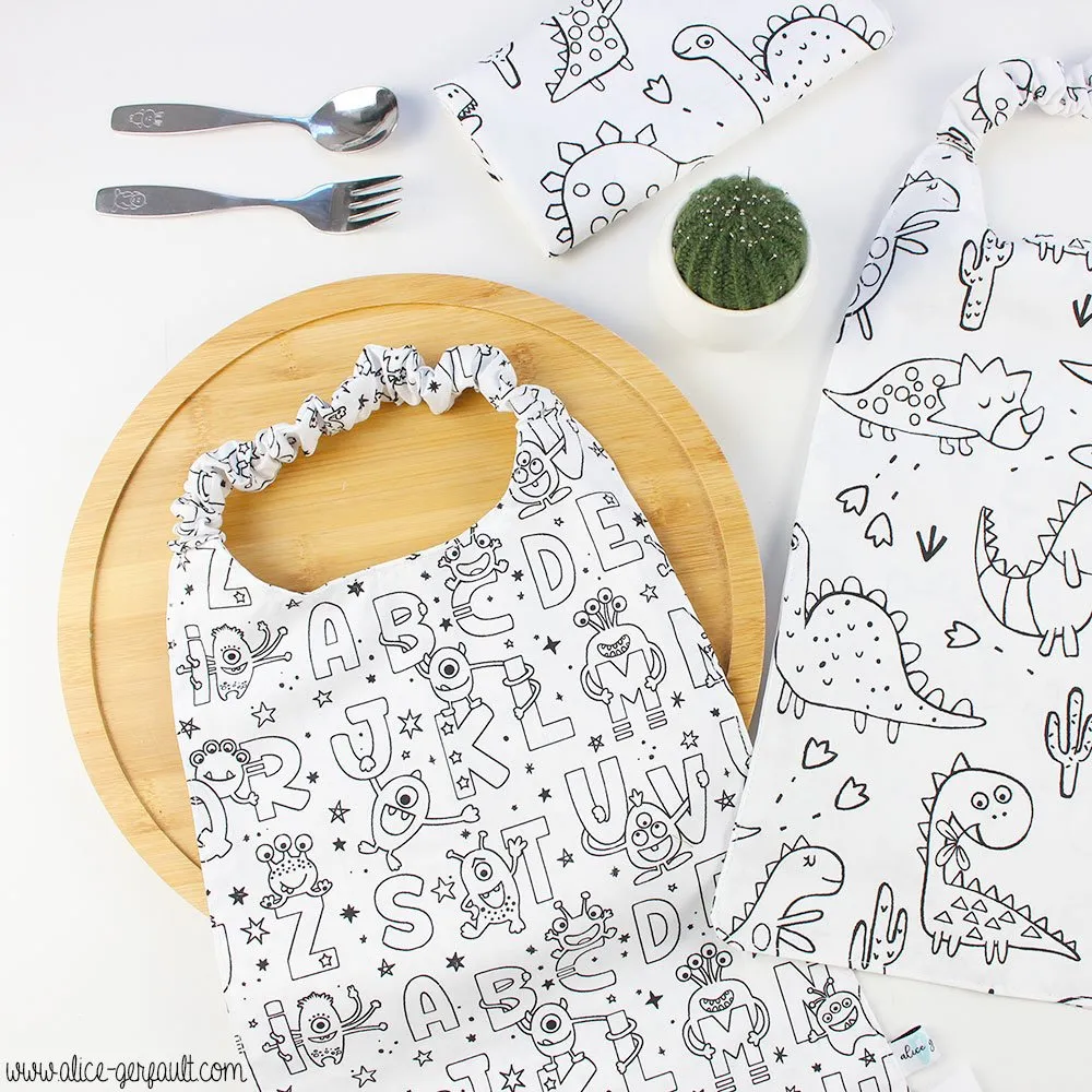 Pour éviter aux enfants de se tâcher à la cantine, il y a la serviette de table élastiquée. Très sincèrement, je ne sais pas si c’est permis dans toutes les écoles. Personnellement, j’ai la chance d’avoir un enfant qui ne se tâche pas (vous êtes jalouses, pas vrai !) alors je n’en ai jamais mis dans le sac de maternelle. Mais je trouve l’idée très chouette, même pour la maison. Découvrez le Tutoriel de serviette élastiquée d’Alice Gerfault.